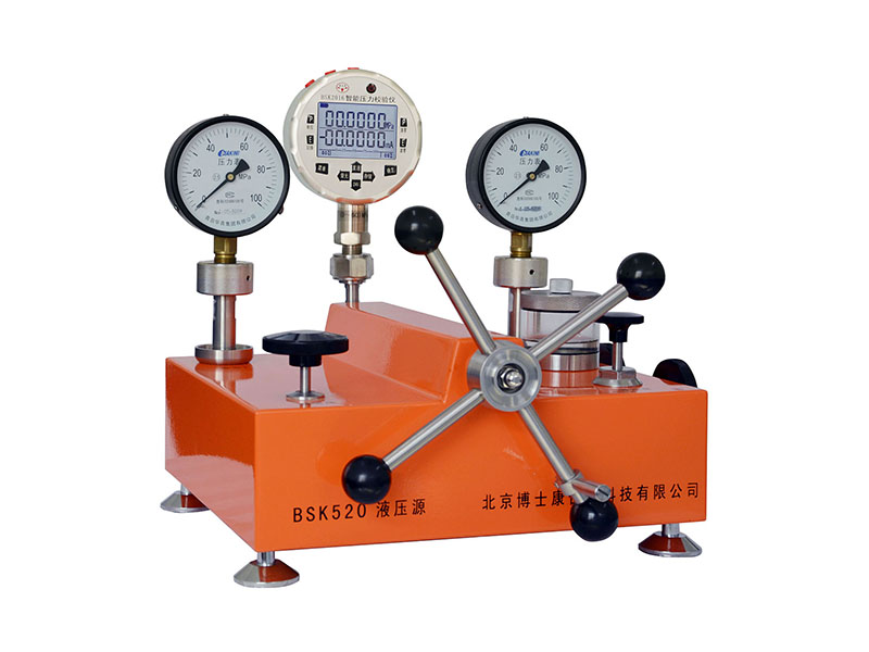 BSK520臺式液體壓力泵是一款新產品,采用按壓式預壓泵,自動沖洗單向閥,特殊的結構設計,解決了堵、漏、不上壓等現象,效率非常高,同時檢定兩塊被檢表。它結構簡單、可靠性高、操作方便、采用復合密封材料,壽命長、零泄漏。壓力調節范圍大,不受被檢容腔大小影響,升降壓平穩。每個輸出口加裝過濾網,后端設有排污口、各個細節設計非常周到,主要用于校驗壓力變送器、精密壓力表、普通壓力表、氧壓表、乙炔表等。